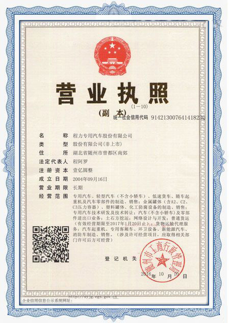 程力專用汽車股份有限公司各類專用汽車的專業廠家,大型專用汽車廠。國內園林綠化、石油化工、市政環(huán)衛(wèi)、壓力容器專用汽車商。注冊“程力威”牌,產品代碼:“CLW”。東風、解放、福田、重汽、陜汽、北奔等公司的重要合作伙伴,主要從事各類專用汽車的業務,同時也銷售各大型廠家的整車及配件。公司擁有自行出口權,其主導品種有灑水車系列、吸污(吸糞)車系列、垃圾車系列、掃地車系列、油罐加(運)油車系列、高空作業車系列、清障車系列、隨車吊系列、自卸車系列、教練車系列、半掛車系列、化工車系列、消防車系列、廂式(冷藏車)系列、牽引車系列、粉粒物料車系列、攪拌車系列、壓力容器系列、專用車配件等十八大系列300多個品種車型。同時批發(fā)東風、解放、楚風各種二類底盤。